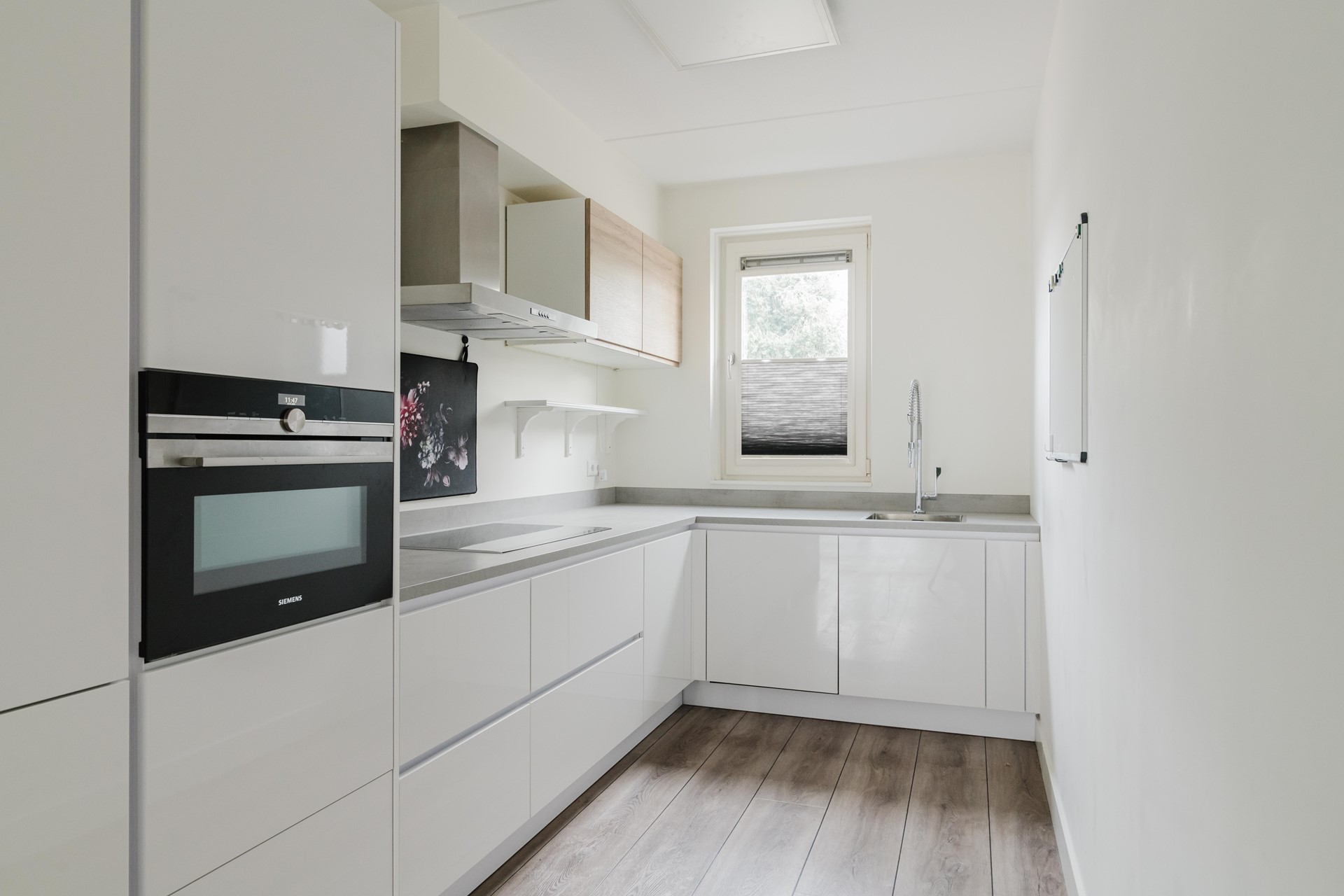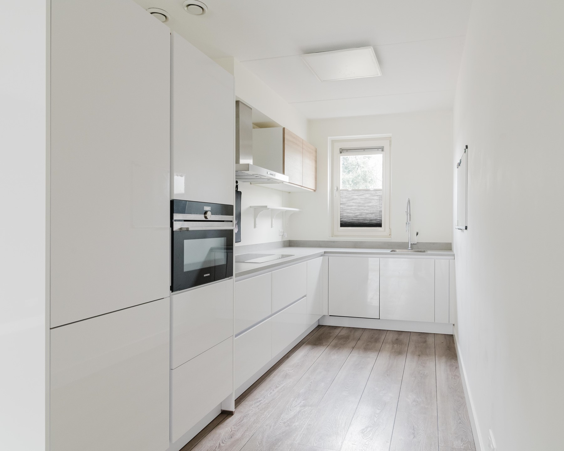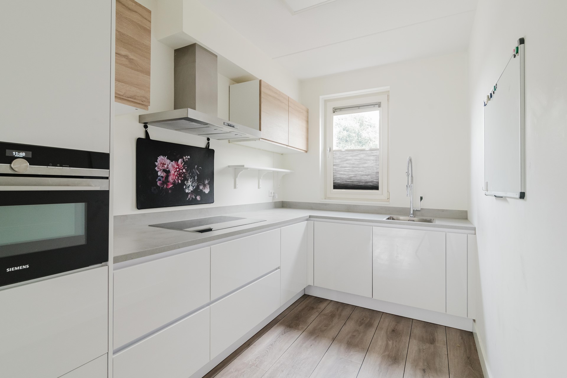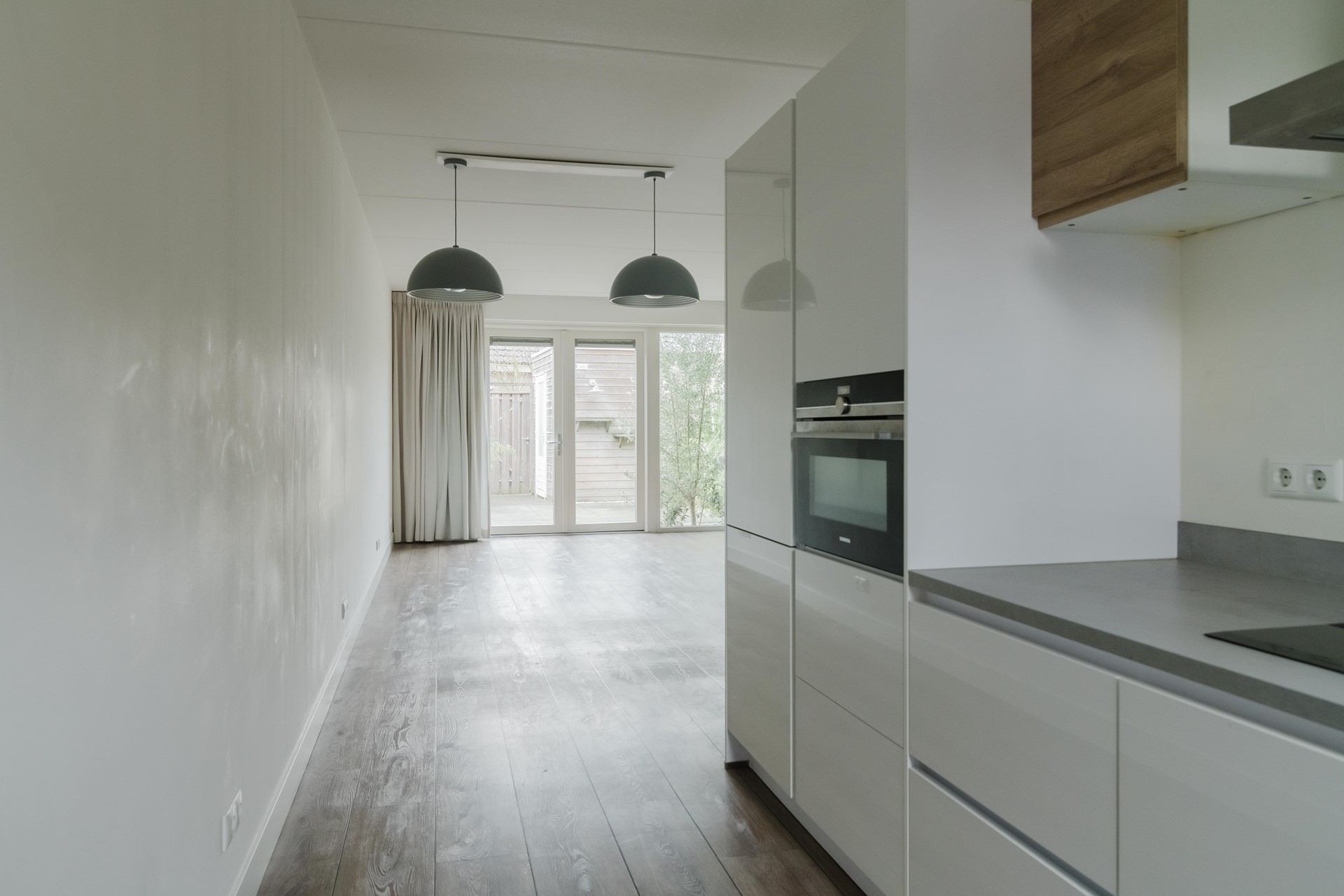 Bij binnenkomst valt direct de lichte en open sfeer op. De woonkamer is tuingericht en dankzij de grote raampartijen en openslaande deuren staat deze ruimte in directe verbinding met de achtertuin. Dit zorgt niet alleen voor veel daglicht, maar ook voor een fijne leefruimte waar binnen en buiten naadloos in elkaar overlopen. Aan de voorzijde van de woning bevindt zich de moderne open keuken, voorzien van diverse inbouwapparatuur en voldoende werk- en kastruimte. Een prettige plek voor zowel dagelijks gebruik als gezellige etentjes. De C.V.-ruimte biedt bergruimte maar ook de plek voor de wasmachine.