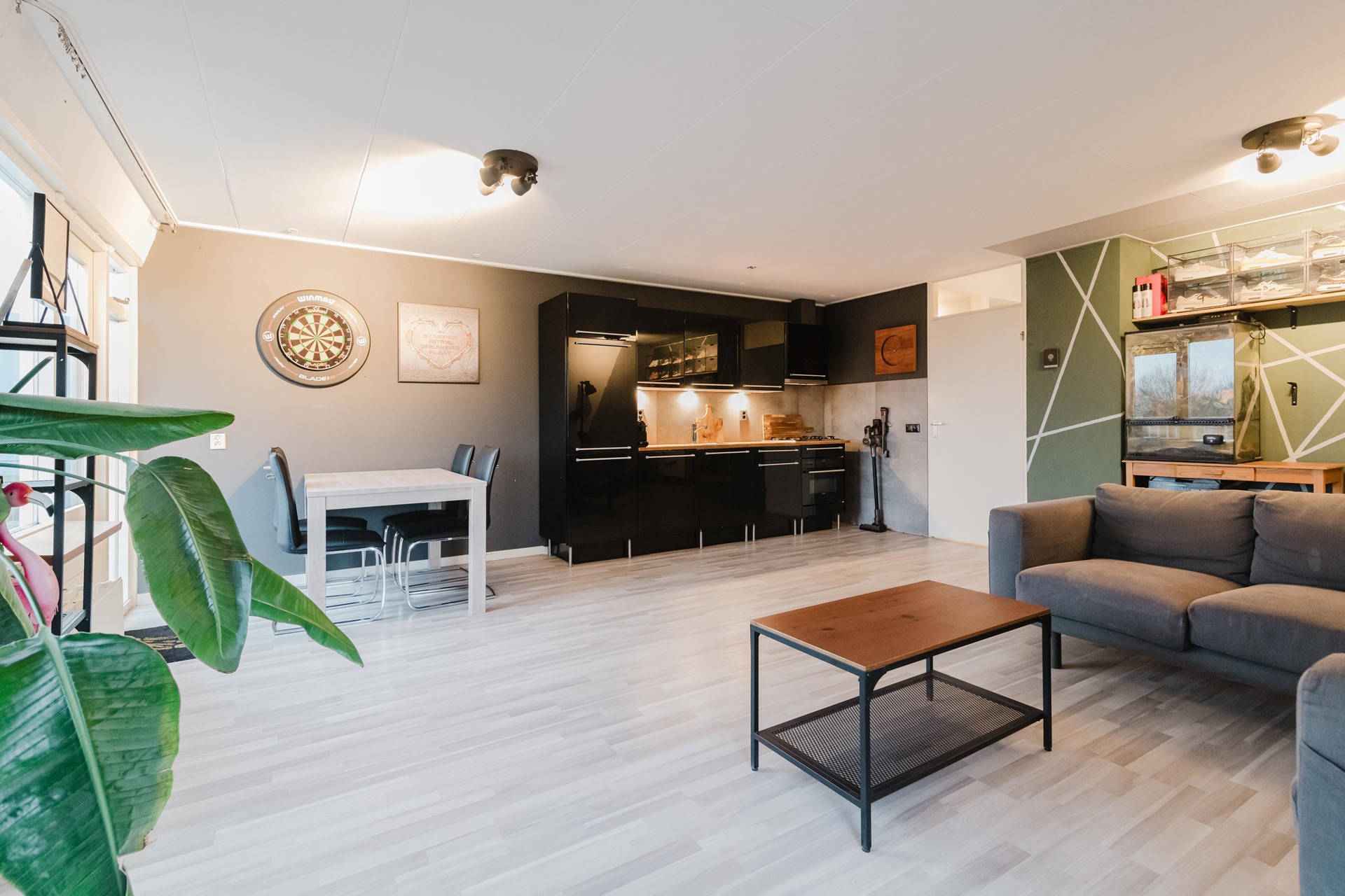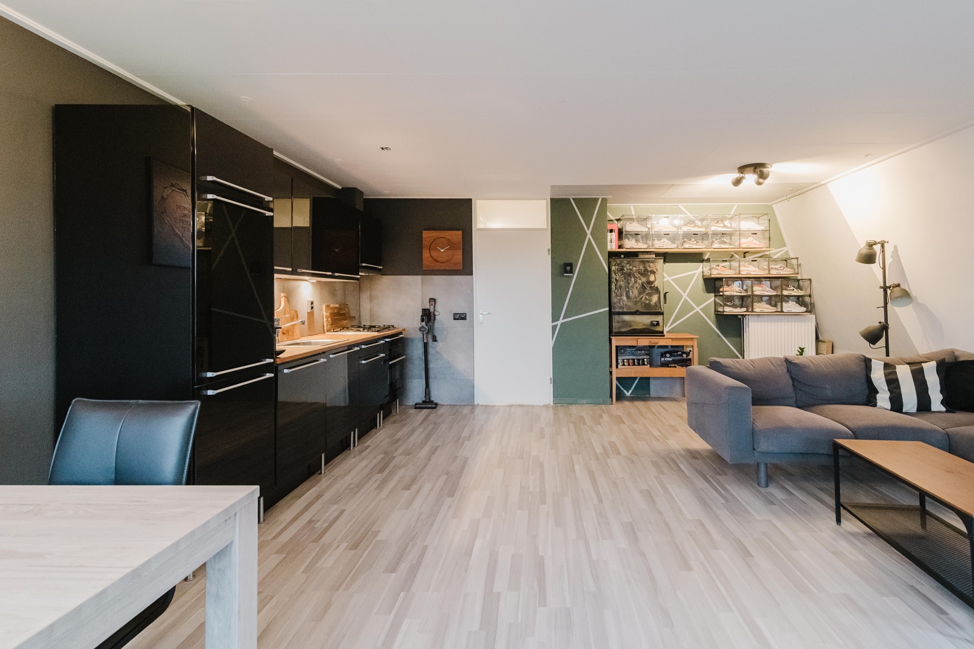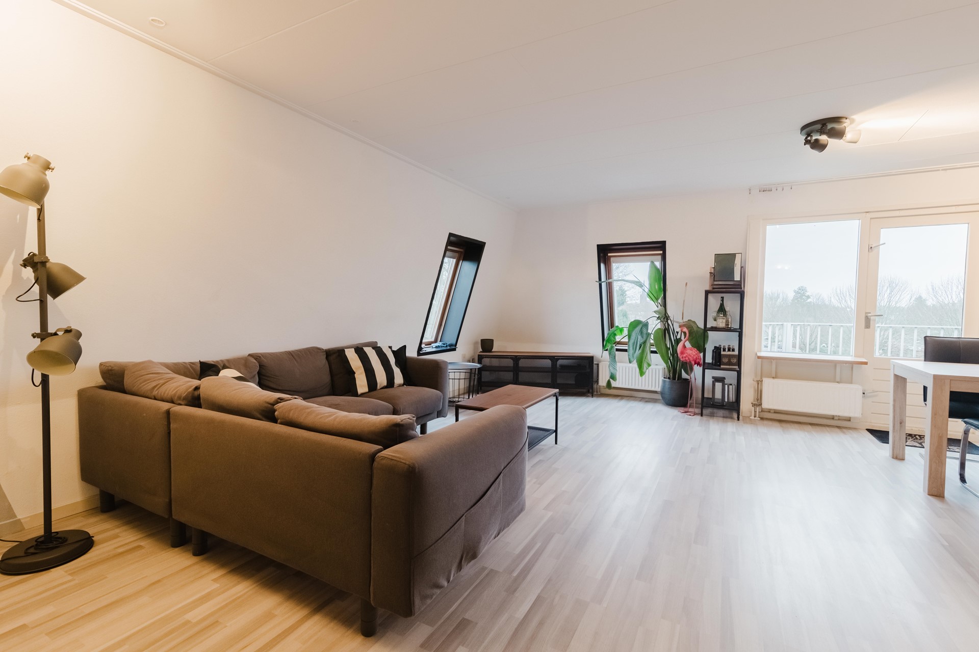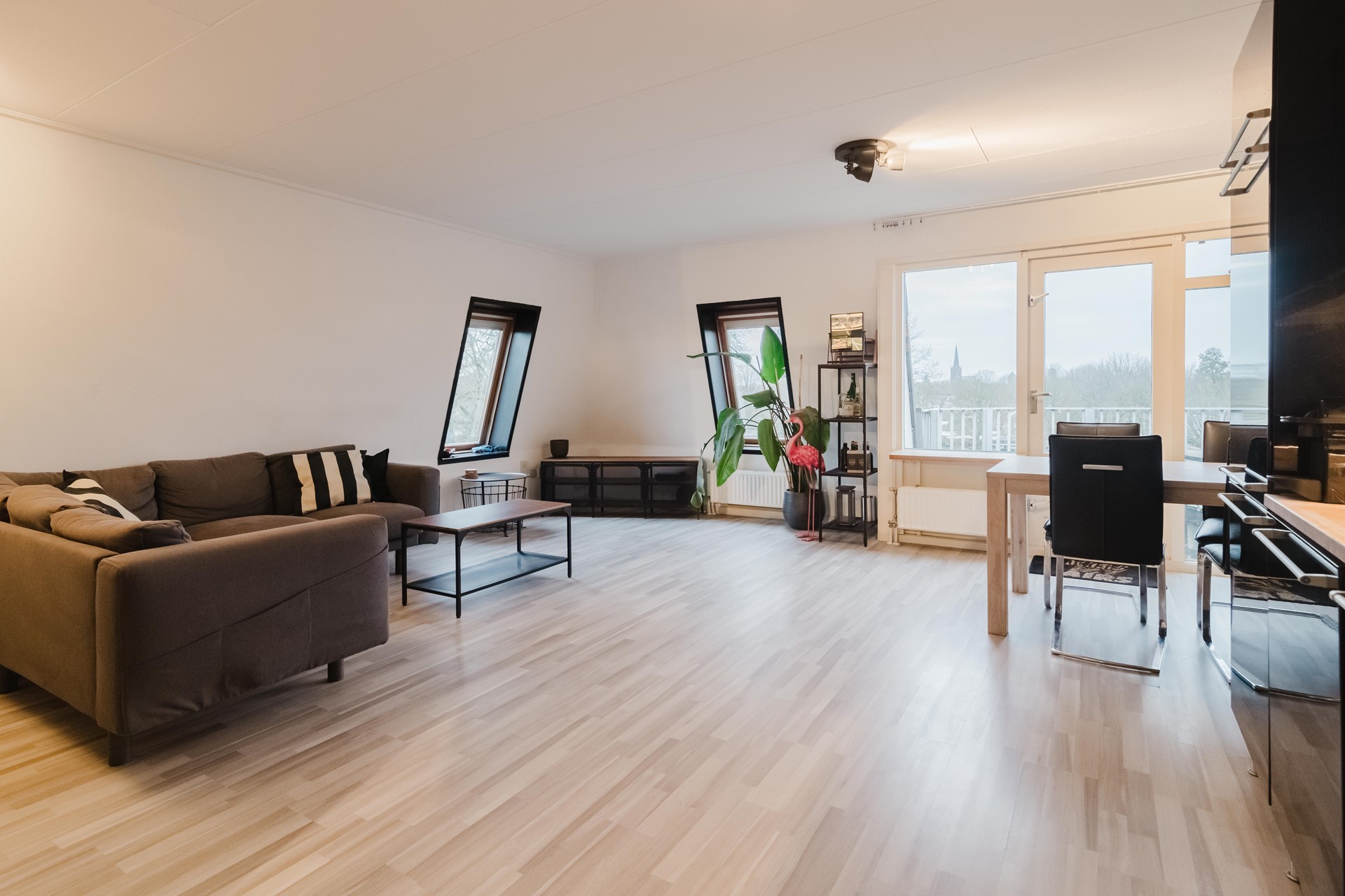 Indeling: Hal met meterkast, toilet met fontein (2024), bergkast, opstelling cv ketel, slaapkamer, nette badkamer voorzien van een ligbad met douche, wastafel en aansluitpunten voor wasmachine en droger. Royale woonkamer met toegang tot het balkon. Open keuken met diverse inbouwapparatuur zoals 5-pits gaskookplaat, afzuigkap, combioven, vaatwasser en een koel- vriescombinatie. Vanaf het balkon is het heerlijk genieten van het vrije uitzicht over het groen richting het centrum. Woonkamer en hal zijn voorzien van een laminaatvloer.